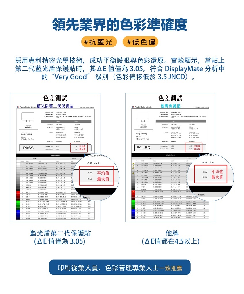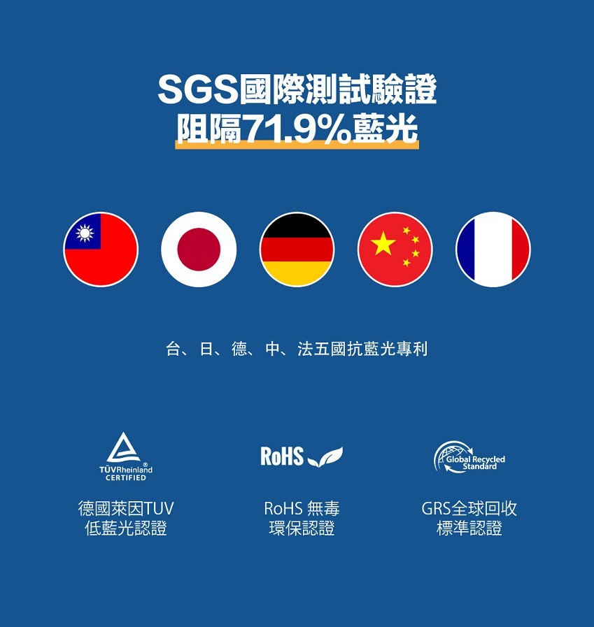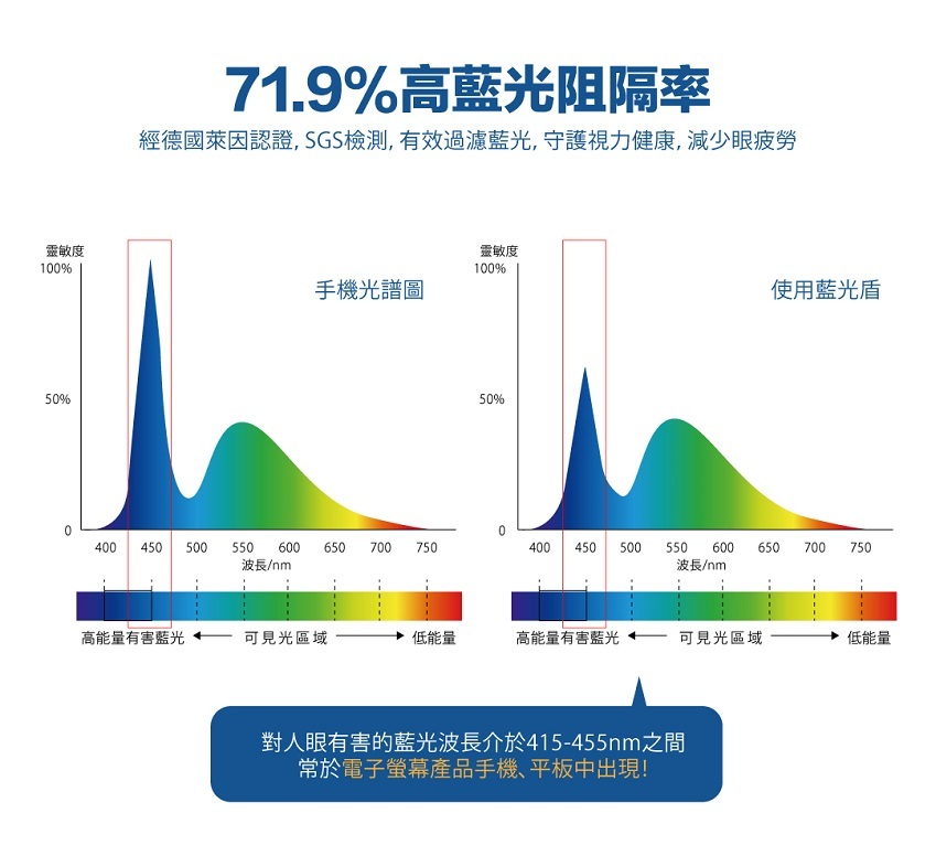 ✅精準抗藍光,阻隔有害藍光達46.9%。