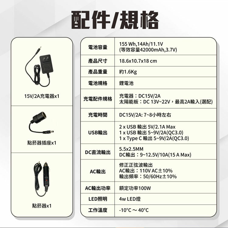 最高可同時提供100W複合式電力輸出