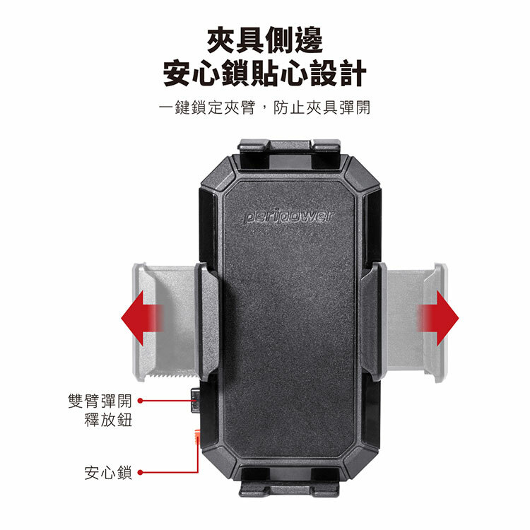 夾具側邊安心鎖貼心設計,一鍵鎖定夾臂,防止夾具彈開