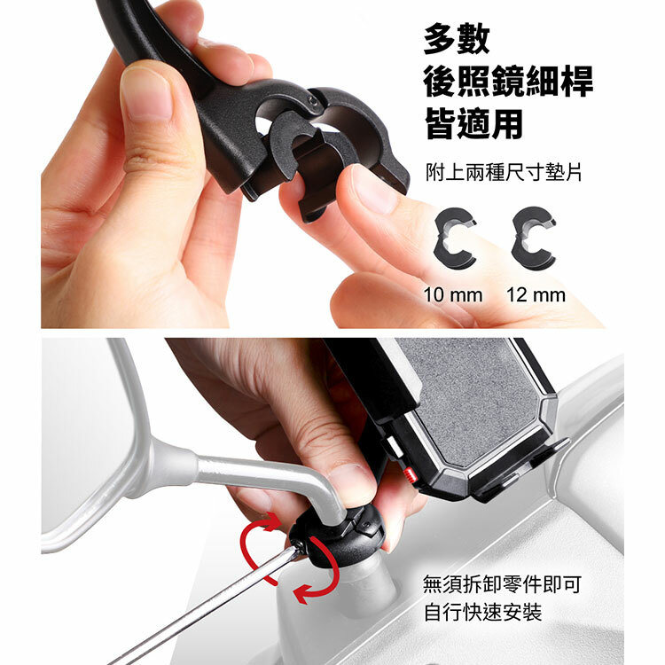 附上兩種尺寸墊片,多數後照鏡細桿皆適用