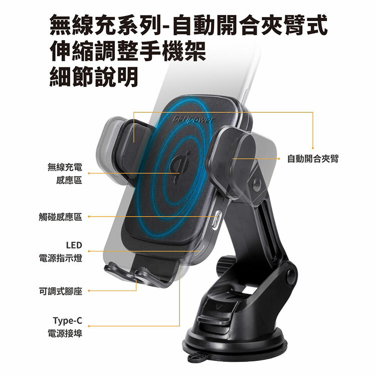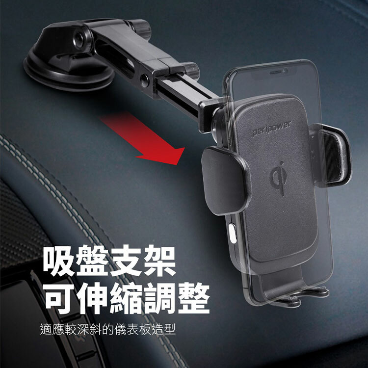 吸盤支架可伸縮調整,可隨儀表板深度、造型,調整至適合的長度與方向