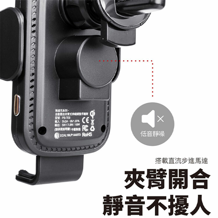 夾具採 USB-C 雙向充電接埠,搭載直流控制步進馬達,夾臂開合靜音不擾人