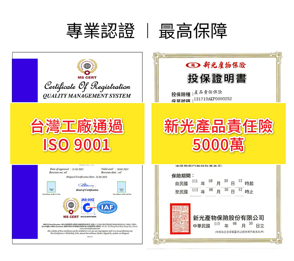 ♦ 追求卓越品質台灣專業製造品質有保障。