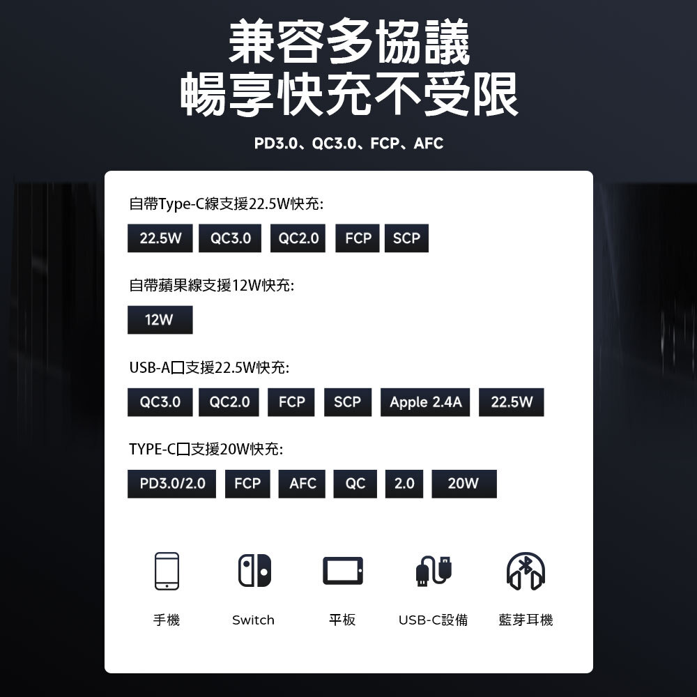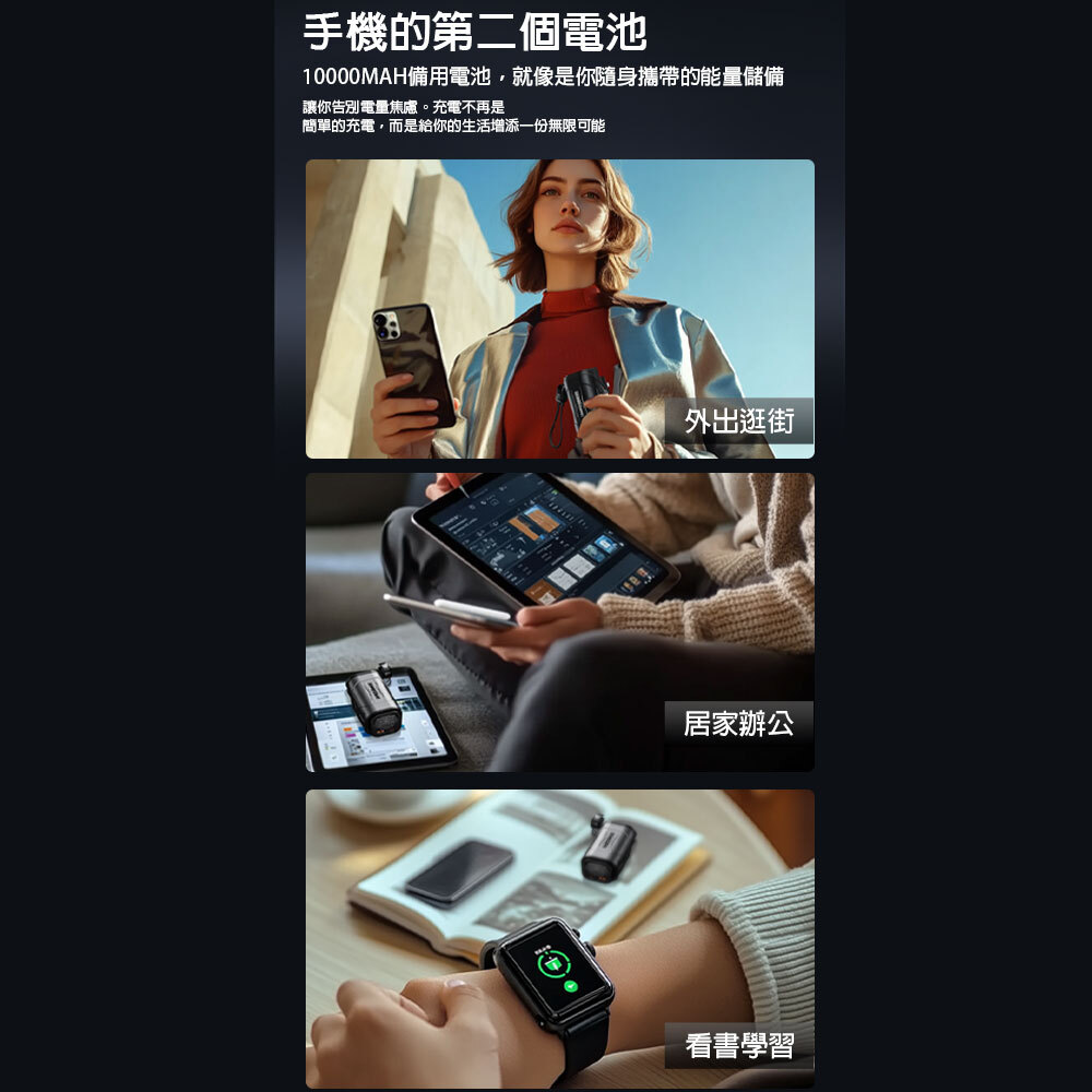 10000mAh 真實大電量:內建 10000mAh 大容量電池,並配備 4 顆 LED 動態指示燈,讓您隨時精準掌握剩餘電量,告別電量焦慮。