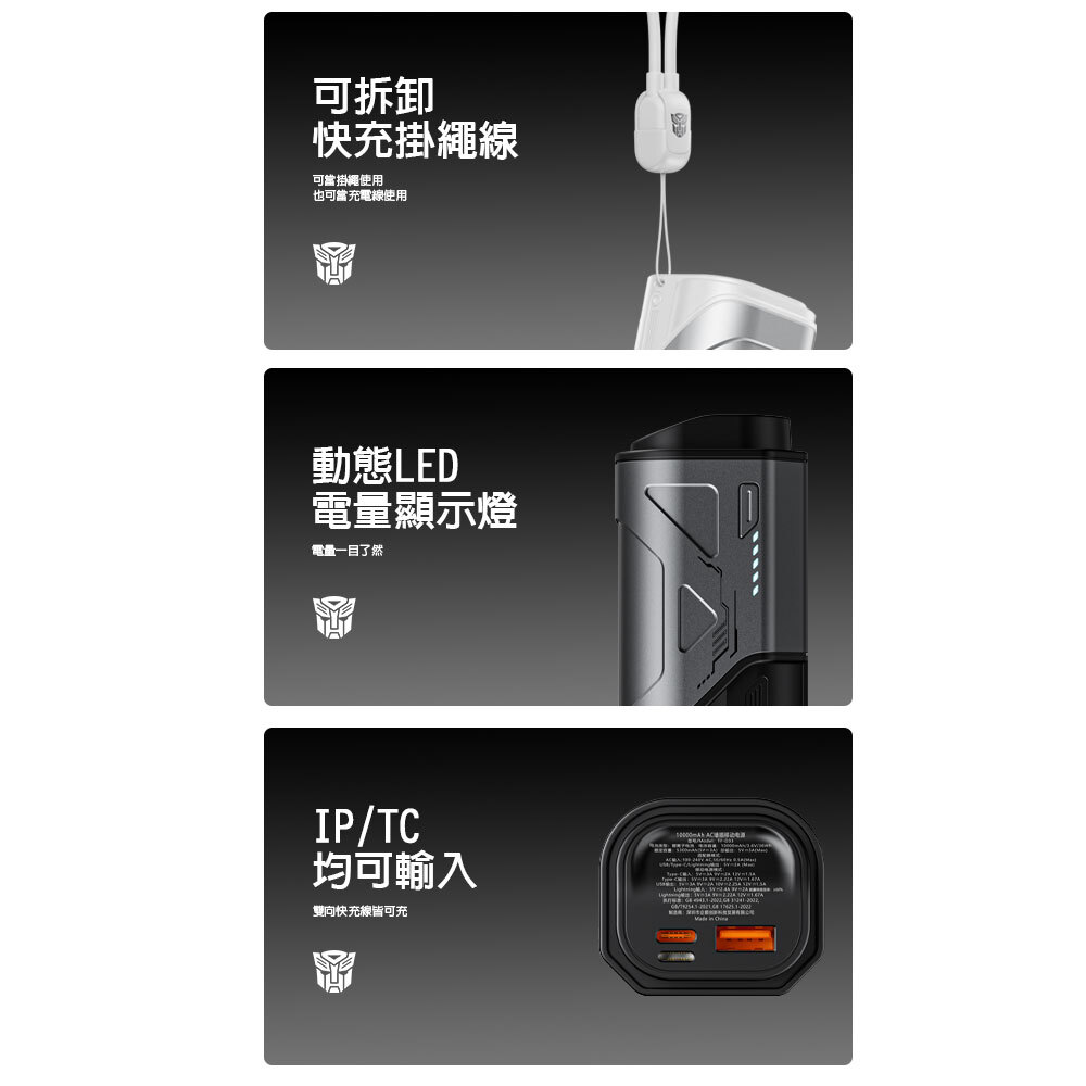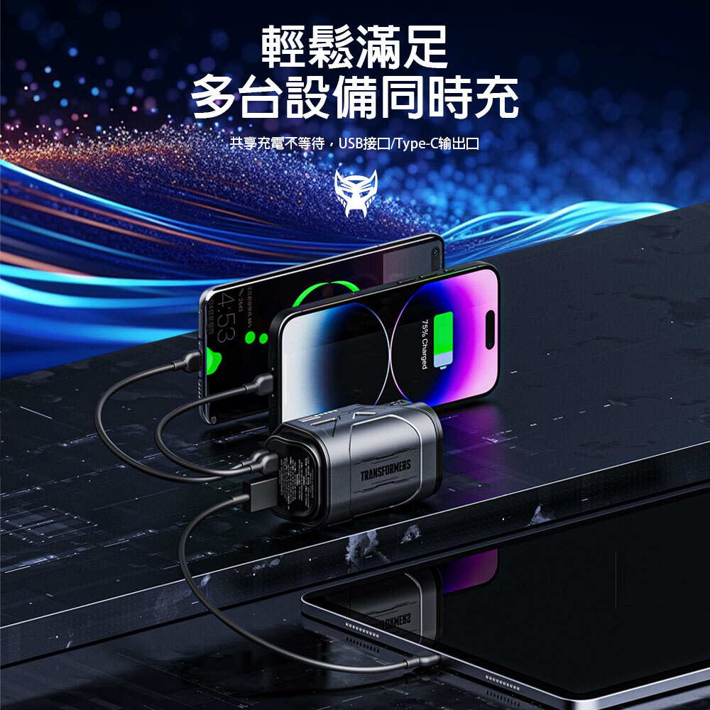 這款由官方授權的變形金剛 (TRANSFORMERS) 萬能旅充插頭行動電源,是一款專為現代人打造的全方位充電神器,完美解決多重設備的充電痛點。